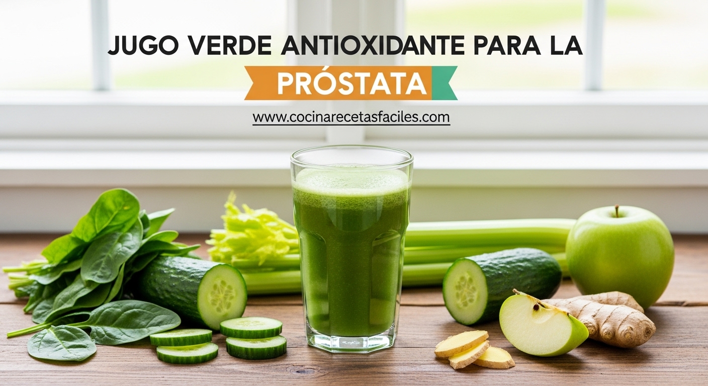 Para proteger la próstata, el jugo verde antioxidante combina vegetales que combaten oxidación celular en semanas. Otro imprescindible es el jugo de arándanos, un remedio casero que alivia molestias urinarias con su acción antiinflamatoria. Prueba además el jugo de granada natural, tres veces más potente que el té verde para desinflamar la próstata.