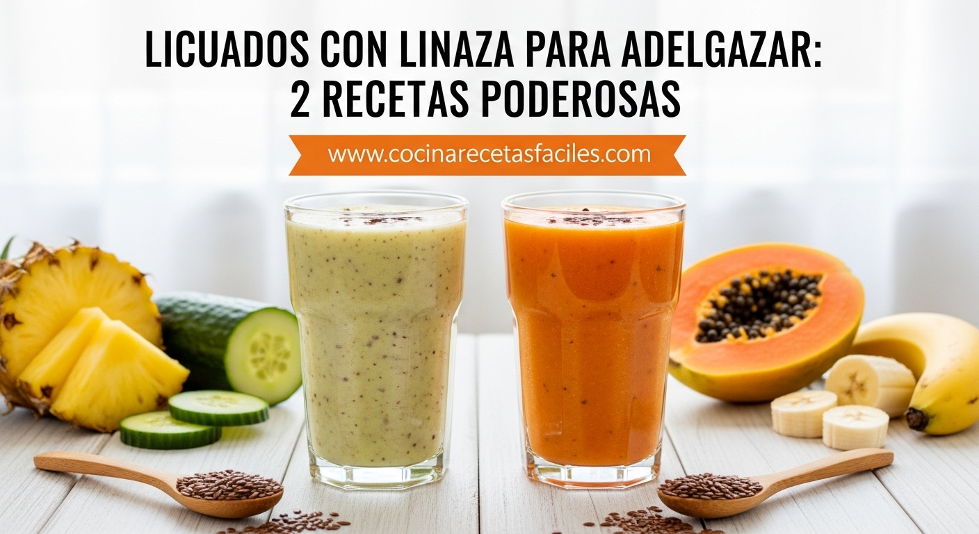 El que más repito es el batido nocturno de linaza y cúrcuma: una cucharada de linaza molida, media cucharadita de cúrcuma, leche vegetal calentita y un toque de miel; lo tomo antes de dormir y al día siguiente ya noto menos hinchazón. Por las mañanas arranco con cualquiera de las 5 recetas de linaza para bajar de peso en una semana, todas listas en 3 minutos y me mantienen llena hasta la comida. Y cuando quiero algo más potente, preparo los batidos de linaza y chía: la combinación es brutal para la grasa rebelde.